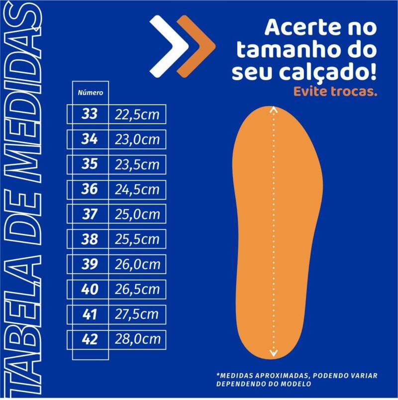 | Tamanho: Nenhum selecionado | 34, 35, 36, 37, 38, 39, 40, 41, 42 |