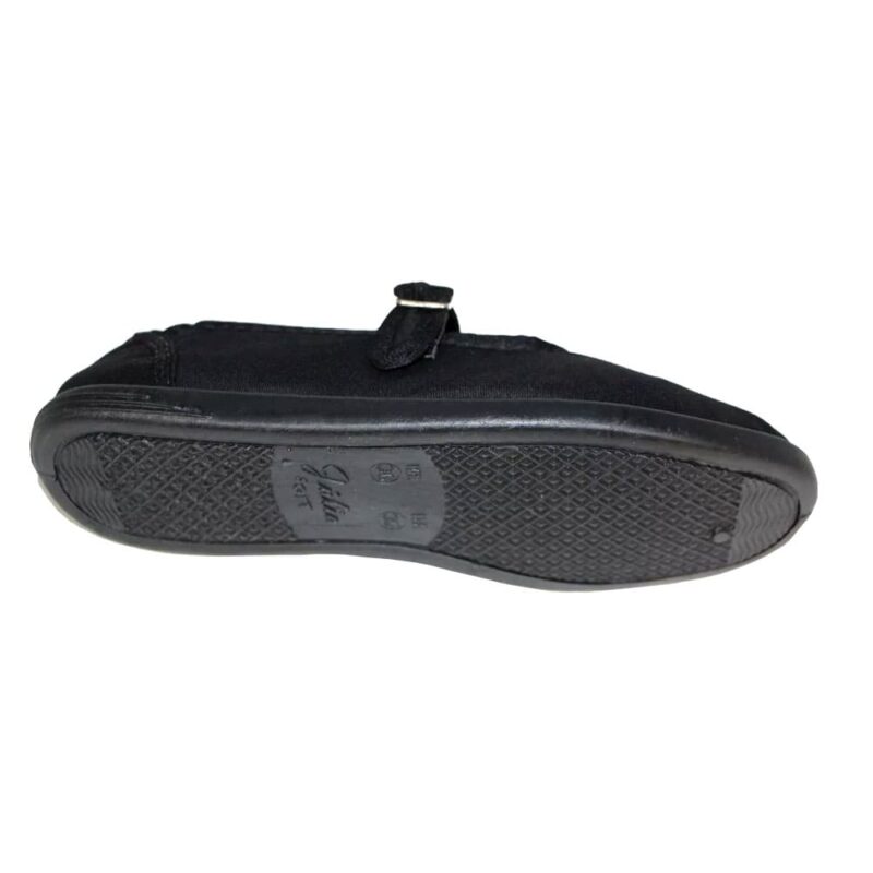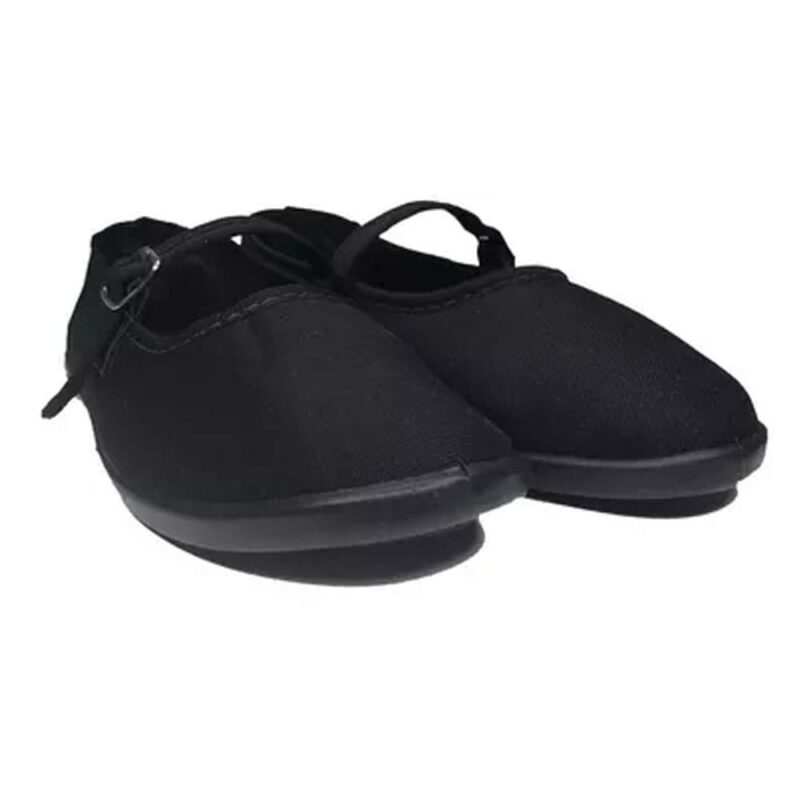 Ela é confeccionada em tecido brim, com tira sobre o cabedal e fechamento por fivela de fácil regulagem.