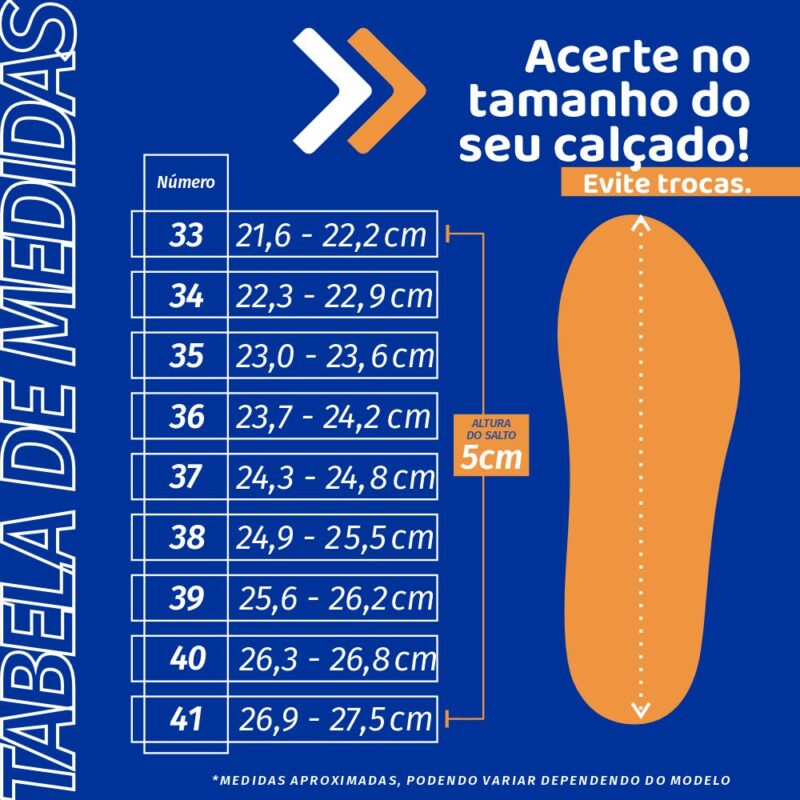 Sofisticado e charmoso o Scarpin 110072 Salto Médio é perfeito para mulheres que gostam de produções mais básicas e refinadas. O calçado possui solado superaderente e palmilha super-estabilidade garantindo mais segurança ao caminhar. O acabamento confortável e a espuma fofinha no calcanhar tornam-o indispensável para quem precisa ficar horas de pé no trabalho. Versátil, ele combina com diversos estilos. Use o modelo com jeans para um look casual ou combine com saias e vestidos para uma composição mais elegante que pode ser usada no trabalho ou em momentos mais formais. Tenha mais liberdade e conforto na sua caminhada ao escolher PICCADILLY! Você sabia que todos os produtos da PICCADILLY têm o Calce Perfeito? É um conjunto de benefícios exclusivos que respeita a anatomia do pé, diminui o cansaço e permite que você vá mais longe nas suas jornadas diárias. Tamanho do salto: 5cm